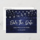 Rustic Navy Blue Wood Lights Wedding Save The Date Announcement Postcard
