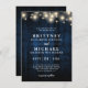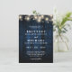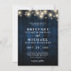 Rustic Navy Blue Wood String Lights Wedding Invitation