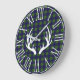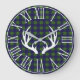 Rustic Navy Buffalo Check Plaid & Deer Antlers Large Clock