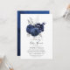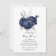 Navy blue and silver floral baby or bridal drive by shower invitation with elegant typography customisable to your event specifics.