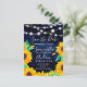 Rustic navy string lights sunflowers save the date announcement postcard