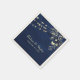 Elegant navy blue wedding napkins featuring a rustic wood texture, delicate gold floral sketch, and glowing string lights. Personalised with the couple’s names and date, these soft napkins add charm to any winter or evening celebration. A beautiful finishing touch for your wedding reception, cocktail hour, or dinner setting.
