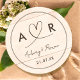Rustic Neutral Boho "Faux Wood - look" Cute Script Heart Wedding or Wedding Thank you Classic Round Sticker. * Note - No actual wood is used in the creation of this item.