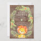 Adorable rustic safari baby shower invitation featuring sweetest baby lion for a boys or neutral baby shower with a green watercolor stripe back. Visit our shop to view this invitation for a girl or boys shower.