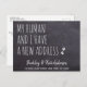 My Human And I Have A New Address! Let your best friend announce your move with this cute and funny pet moving announcement card on a rustic chalkboard slate design.