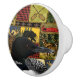 A beautiful common loon on a rustic Northwoods camp-style background featuring moose, bears, and a canoe and oars. Cosy wildlife decor for your up north camp or cabin!