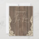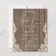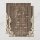 Rustic Nothing Fancy Just Love Wedding Invitation. Celebrate your special day with this charming rustic wedding invitation. Featuring a warm, weathered wood background and delicate lace accents, it evokes a sense of timeless romance. The elegant script typography "Nothing Fancy Just Love" stands out beautifully, setting a tone of heartfelt commitment. Perfect for couples seeking a country and elegant feel for their wedding stationery. This boho invitation is designed to impress your guests and set the stage for a memorable celebration.