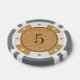 Old west rustic casino style wooden-look $5 poker chips with customisable value and sides. Retro style numbers with white marks. Add your name or personalised text to create you own unique vintage playing chip. Perfect gift for the cowboy or riverboat gambling man on your list. Not made of real wood -- image is printed on ceramic. More unique masculine novelty gifts for men, poker players, casino gamblers, card sharks, executives available in store.