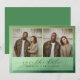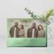 This wedding save the date card features a modern, minimalist design with two side-by-side photo placeholders set against a textured background. The colour palette includes muted earth tones like olive green and soft brown, creating a warm, rustic feel. Elegant cursive typography highlights the "save the date" message, while clean sans-serif fonts provide clear contrast for names and details. The layout balances simplicity with vintage charm, making it perfect for couples seeking an understated yet stylish announcement.