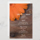 The casual yet classy Rustic Orange Daisy Country Wedding Menu can be personalised with the details of the meal that you will serve at your bridal shower luncheon, engagement barn party or marriage reception dinner when you add the salad or first course, entree or second course and dessert or third course. This charming custom farm style or ranch wedding menu features a quaint floral photograph of an orange gerber daisy flower blossom with weathered brown barnwood.