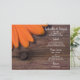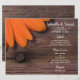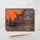 Customise the charming Rustic Orange Daisy Country Wedding Menu with the details of the meal that you will serve at your informal farm style rehearsal dinner, bridal shower luncheon or marriage reception barn party by adding the salad or first course, entree or second course and dessert or third course. Personalise it with the names of the bride and groom, venue location and event date. This casual yet classy wedding menu features a quaint floral photograph of an orange gerber daisy flower blossom with brown weathered brown barn wood and a rusty nail head.