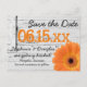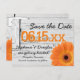 Rustic Orange Daisy Distressed White Barn Wood Save The Date Postcards. The wood design is white wood with pealing paint and there is a orange gerber daisy in the corner. This rustic country style design is on both the back and the front of the postcard. Just add your wedding details, your return address, and they will be ready to mail.