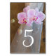 Add a touch of charm to your ranch style bridal shower or marriage reception with the casual yet classy Rustic Orchid Elegance Country Barn Wedding Table Numbers. This informal and elegant design features a quaint floral photograph of pink phalaenopsis orchid flower blossoms on the stem with a white bridal veil with a brown weathered barn wood background.