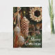 A photo of a rustic theme Christmas tree with acorn, pine cone, wreath and star ornaments. The colour theme is rich beautiful tones of gold, brown and bronze. The front says Merry Christmas and the inside says Wishing you much joy and happiness this Christmas season. Personalise the front and inside with your own message if desired. This holiday ornament card is great for conveying the festivity of Christmas.