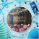 This charming rustic whiskey barrel serves as a unique wedding décor piece, featuring a weathered, aged appearance that exudes vintage elegance. Resting on a wooden platform, the barrel is topped with a sturdy lid, perfect for use as a decorative accent or functional display. A warm string of lights wrapped around a wooden post softly illuminates the dark background, creating an inviting ambiance. Delicate pink and burgundy florals frame the bottom of the scene, adding a romantic and sophisticated touch, making it an ideal setting for a rustic, barn, or country-style wedding.
