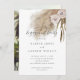 Boho and rustic engagement party invitation template card featuring watercolor illustration of pampas grass with blush pink flowers. Perfect for your desert wedding!