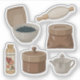 A charming collection of kitchen-themed stickers featuring vintage-style essentials: a tea pot, spice jar, rolling pin, berry bowl, and pantry items. Perfect for adding a warm, nostalgic touch to your planners, recipe books, or culinary journals!
