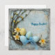 Rustic Pastel blue and yellow Easter eggs retro Holiday Card