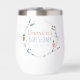 Pretty pastel colours in tan, mint, and coral adorn these baby shower thermal tumblers in a botanical style wreath with berries and pine cones. The rustic script typography is customisable or you can choose to keep this trendy baby shower style for your convenience. Personalise with your name and the date of your baby shower. These boho style baby shower tumbler thank you gifts are gender neutral and perfect for either a boy baby shower or a girl baby shower