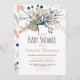 Soft pastel colours in coral, mint, teal, and brown adorn the top in a botanical style with berries and pine cones. This trendy typography is customisable or keep this fun style as it is for your convenience. Perfect gender neutral invitation for a either baby boy or baby girl shower.