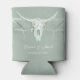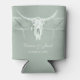 Rustic pastel sage green white rustic bull cow skull country western rodeo cowboy wedding reception beer can coolers. Vintage farmhouse inspired printed distressed texture favour gifts. Old wild west style antique. Cool, trendy, modern farm animal design. Personalise your script. Image copyright Marg Seregelyi Photography.