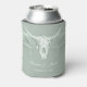 Rustic Pastel Sage Green White Western Cow Skull Can Cooler
