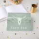 Rustic Pastel Sage Green White Western Cow Skull Guest Book