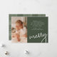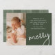 Modern country rustic one photo Christmas card features stylish white merry script and festive shades of green with a patchwork plaid pattern on the back of the card. Personalise the classic greeting card with your custom family photo!