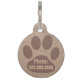 Personalised dog tag with paw print and textured effect background for a rustic look. Image repeated on reverse to custom with your contact number.