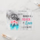 * Retro Rustic Vintage and Grunge 60's style Peace Sign Feathers Flowers Tribal Boho Watercolor design. There is a white wood background which gives it a rustic touch.
