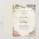 Embrace a charming, rustic ambiance with this delightful design featuring a soft wooden background. Delicate peach and blush floral arrangements bloom in the corners, intertwined with whimsical string lights that cast a warm glow. This artistic composition evokes a romantic, outdoor celebration, perfect for creating an unforgettable event.