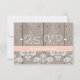 Pretty pale peach HYDRANGEA WEDDING RESPONSE CARDS WITH a wooden fence, antique damask pattern lace background and stitched washed coral ribbon look design ON THE BACK THAT CAN BE CUSTOMIZED TO SAY WHAT YOU LIKE ON THE BACK. This RSVP is perfect for a country, farmhouse, garden party or barnyard style wedding, anniversary party or engagement dinner. Designed by Chrissy H. Studios, LLC. All rights reserved.