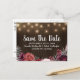 Rustic Peony Marsala Country Save The Date Cards - feature a rustic barn wood background with string lights. The bottom features various elegant watercolor peony flowers, roses and floral elements in shades of grey, pink, burgundy, wine and Marsala. See the collection found on this page for that item and to also see the full matching product designs to complete your event.