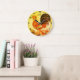 Rustic Personalised Colourful Rooster chicken Roun Large Clock