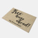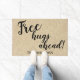 Welcome your guests with this fun script typography rustic door mat design personalised with a name and "Free hugs ahead" message. Fill in the text field with a family name, remove the name or click customise to select a font style, size, and colour you prefer.