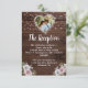 This lovely watercolor Rustic Romantic Wood Twinkle Lights Floral Reception enclosure card features a dark brown wooden background with pink and white flowers, with just a touch of purple, highlighted by a photo of the bride and groom. Touches of calligraphy are a perfect accompaniment to the beautiful flowers. A lovely design choice to set the tone for your wedding celebration. For any design question or additional customisation and / or matching items, just send an email to charmdesignstudio@rcn.com and we'll be delighted to assist. View the collection link on this page to see other pieces of the collection, with more to follow upon request.