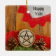 Rustic Pine Cones Happy Yule Ceramic Ornament