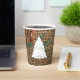 A rustic pine forest themed design with faux burlap texture in the background accompanied with vintage pine cones and branches as well as a simple white silhouette of a Christmas tree and your custom text . Ideal for Christmas gifts and decor. Customise the Christmas paper cup with your text and make it your own.