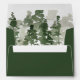 Rustic, dark hunter green envelops featuring your name and address in white text on the envelope's flap. The inside of the envelope features a forest of dark hunter green & sage watercolor pine trees. Designed to coordinate our Rustic Pine Forest wedding collection.