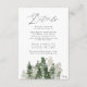 Elegant, rustic wedding details enclosure card featuring a forest of dark hunter green & sage green watercolor pine trees. Personalise the wedding guest information cards by adding key details such as hotel accommodations, welcome reception information, your website, etc. Designed to coordinate with our Rustic Pine Forest wedding collection.