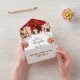 Imagine your guests' delight when they receive this stunning invitation, setting the tone for a cosy, joyful celebration. The rich red poinsettias symbolise love and festivity, while the green pine elements bring a touch of natural beauty. This combination creates a welcoming, heartwarming atmosphere that reflects the joy of your union.