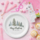 Celebrate the season in style with these rustic Christmas paper plates featuring a watercolor forest of evergreen trees. The festive design blends rustic charm with modern typography, making it perfect for your Christmas celebration. Personalise the paper plate with your own name.
