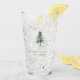 Custom drinking glasses great for a hotel, motel, bed and breakfast business, featuring a single watercolor pine tree. Personalise with your business name.
