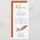 Was looking for a design to match the thence and dresses of the Bridal party, and I just so happen to stumble join Zazzle and this template. It's so BEAUTIFUL!! It was pretty easy to add my text and create what I needed. I do wish I could have moved up the bottom part but it's in a certain size box. I would have also liked the option of multiple colors for various parts of my text, but that wasn't available. Even though there were limitations, these menus came out BEAUTIFULLY! Maybe limitations are the way to go! The paper- heavy stock- is GREAT weight and quality. My shipment arrived in such a timely fashion and well packaged. This is definitely the way to go. You will love the final product. Printing was FABULOUS. IN VERY IMPRESSED