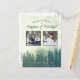 This postcard is a wonderful way to send holiday greetings. It features a watercolor painting of a rustic mountain scene with fog and pine trees. There is space for two photos and a short note or greeting on the back. Perfect Christmas card.