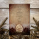 Customise the charming Rustic Pines Woods Wedding Menu with the details of the meal that you will serve at your woodsy wedding rehearsal dinner or bridal shower luncheon by adding the salad or first course, entree or second course and dessert or third course. Personalise it with the names of the bride and groom, venue location and event date. This woods or forest wedding menu features a nature style photograph of a wood slice with the word LOVE on it, two brown pines cones, green pine tree branch and white bridal veil with a burlap background. Perfect inspo for the couple who has planned a casual yet classy natural outdoor woodland wedding theme.