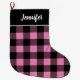 Rustic Pink and Black Buffalo Check Monogram Large Christmas Stocking