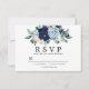 Beautiful summer floral arrangement tops this wedding RSVP card. Light blue hydrangea flowers, dark blue gardenias and blush pink roses and flowers are nestled in dark green foliage and eucalyptus leaves. This enclosure card is part of the Carmen's Floria wedding collection. It contains budget-friendly DIY templates you can use to design your wedding stationery or to create welcome signs and table decor for your ceremony and reception. If you need help finding matching items, please contact me. My name is Nelda and I'd love to help!