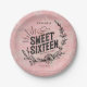 Rustic Pink Cowgirl Floral Sweet Sixteen Birthday Paper Plate