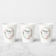 Soft blush pink roses and bright pink buds create a beautifully rustic floral wreath. White hydrangeas at to the floral bloom. The birthday woman's name is written in a large script font. 60th Birthday and the thank you sentiment follow. This paper cup is part of the 60th Birthday Pink Rose Floral collection. It contains many DIY templates that let you quickly create invitations and party supplies.